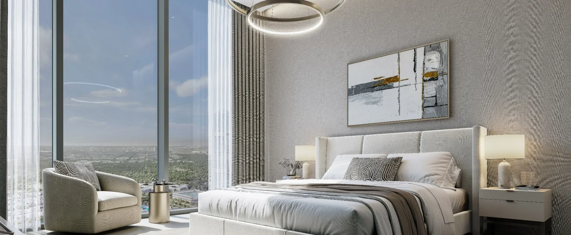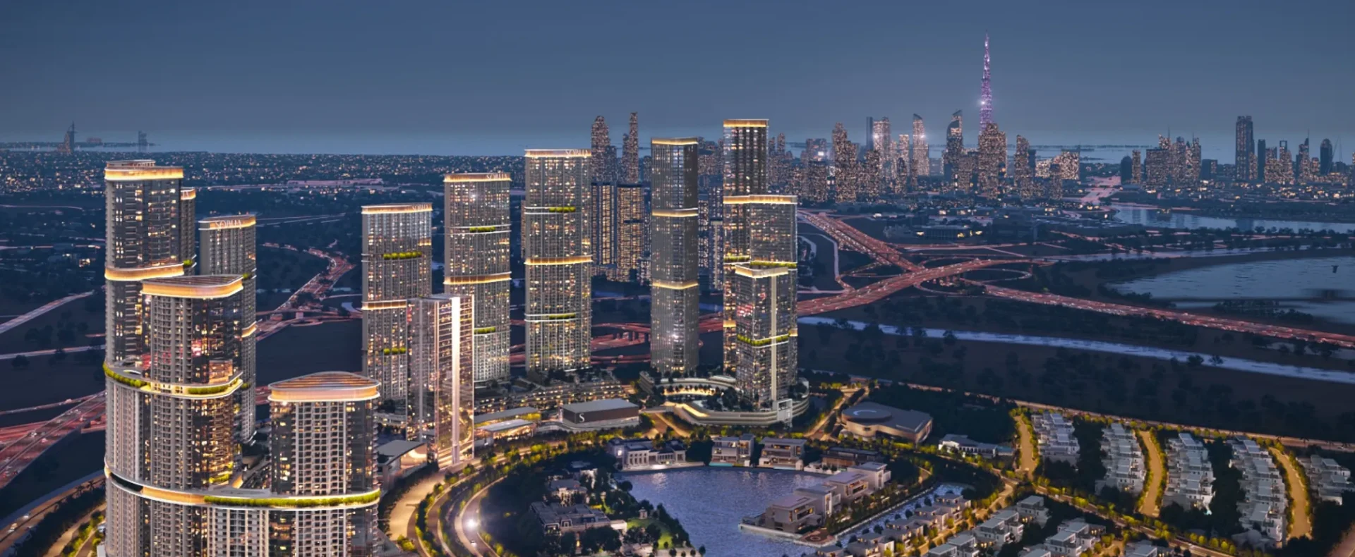 Skyvue Altier is the defining point of Sobha Hartland II, the final tower in a master community where city life and calm living meet in perfect balance. Rising at the edge of the northern skyline, it offers a rare vantage point over two worlds: the glittering Downtown Dubai skyline and the protected beauty of the Ras Al Khor Wildlife Sanctuary.