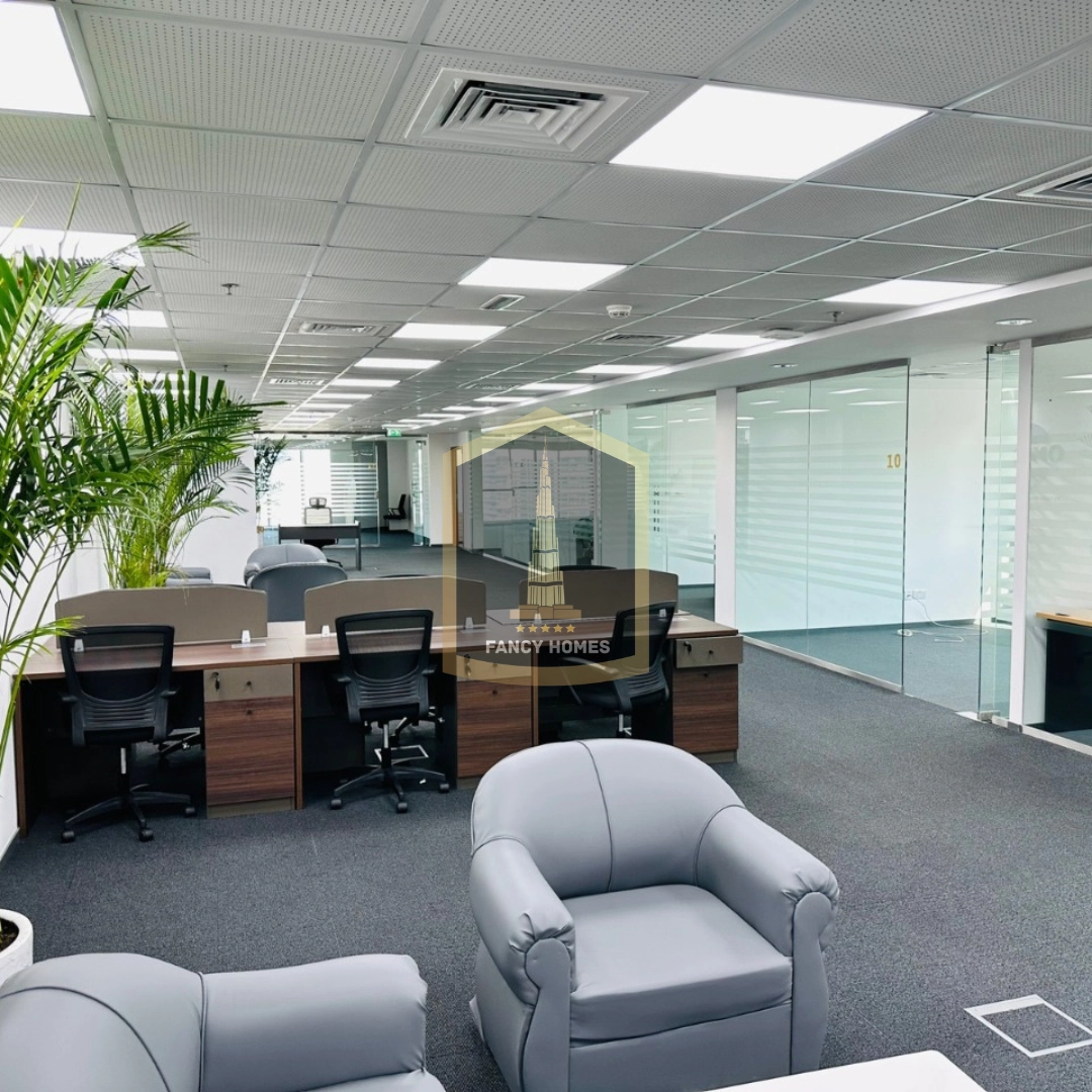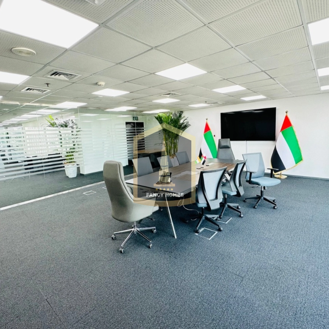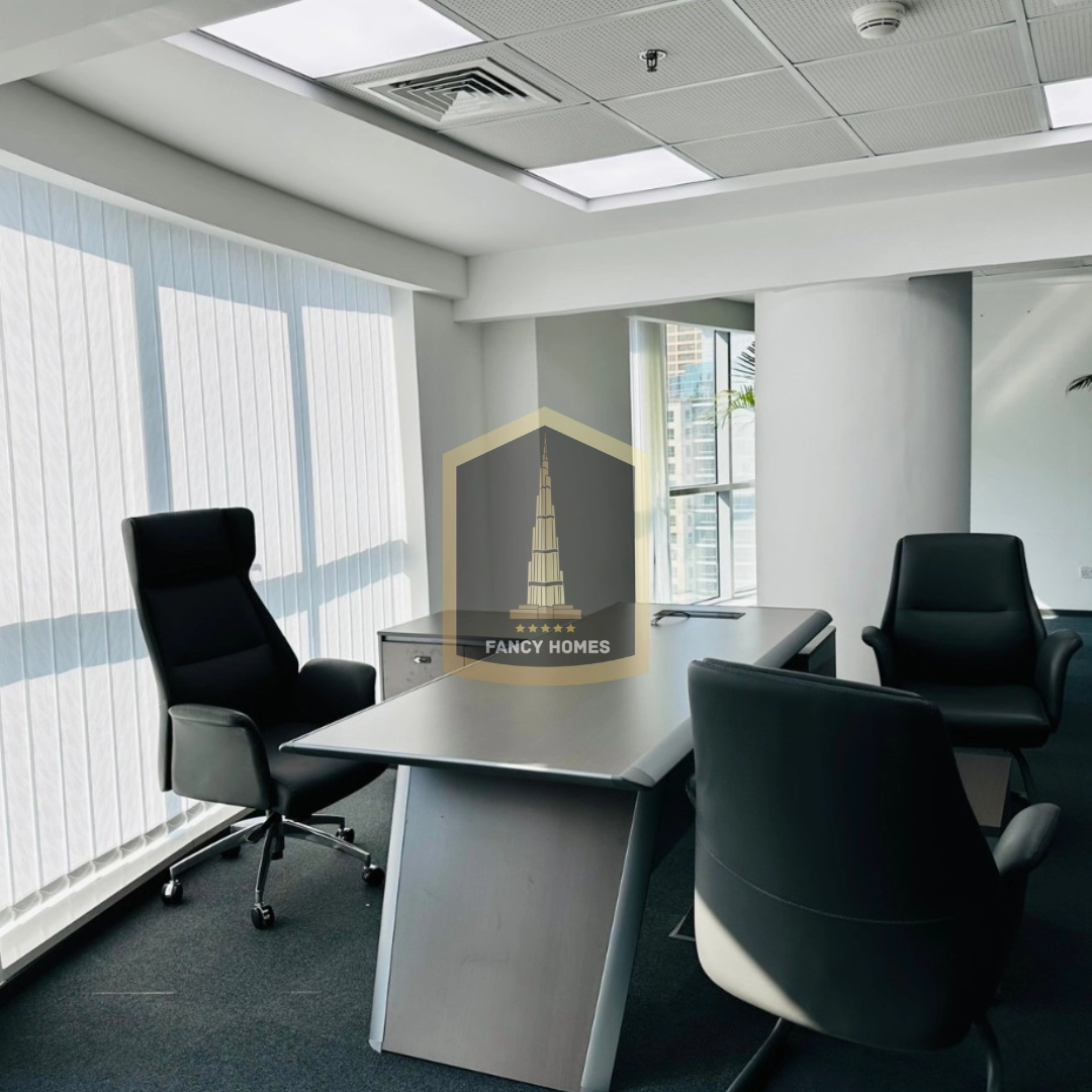 FANCY HOMES Real Estate Brokers is proud to present this magnificent fully fitted office space with a balcony with Dubai Eye and Skyline View located at Tameem House, Barsha Heights Tecom, Dubai.