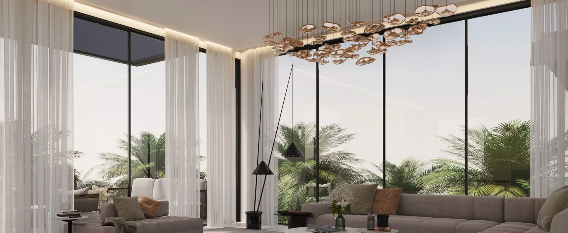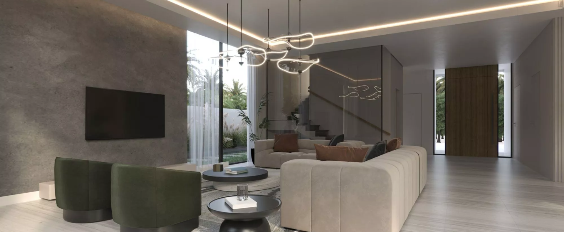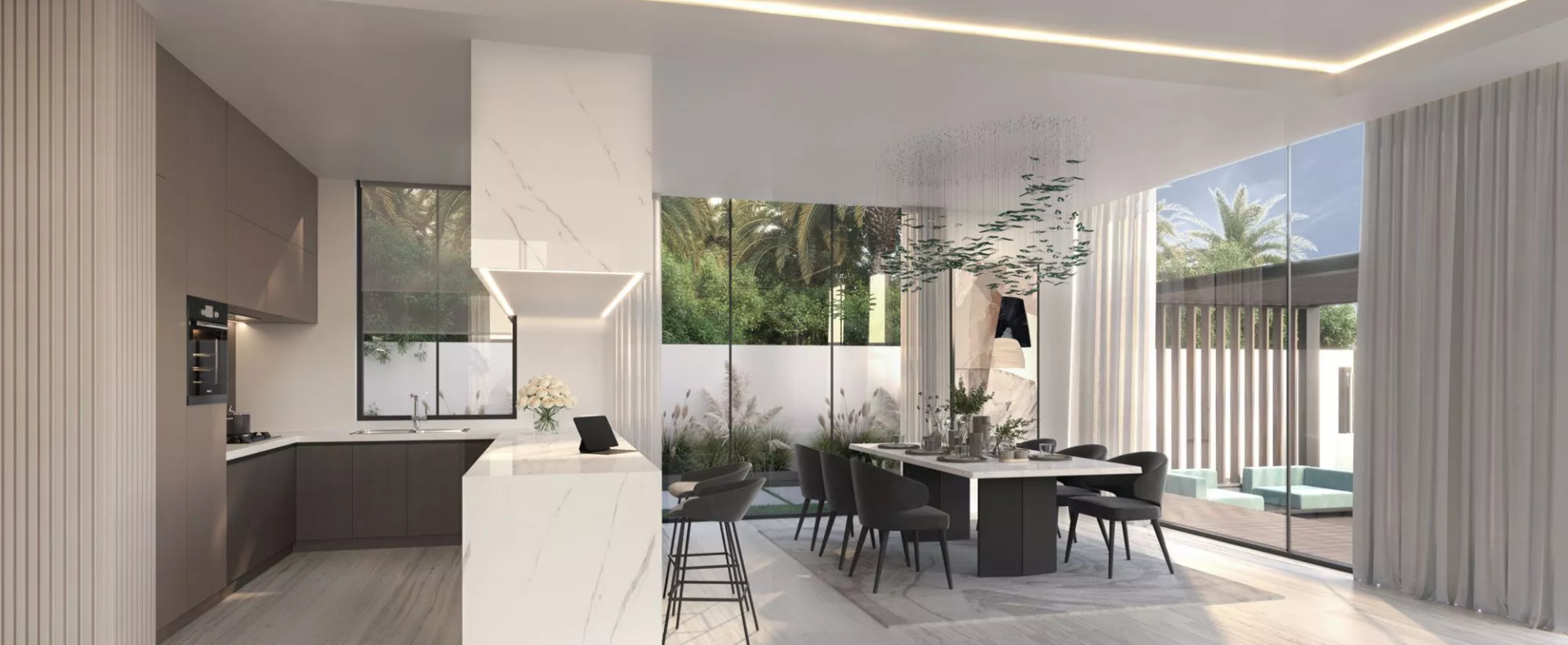 You have the privilege of choosing from a total of 84 six-bedroom standalone and twin villas, as well as six-bedroom townhouses, all boasting breathtaking views of the lush greenery. These properties offer spacious living areas ranging from 4,671 sq. ft to 8,032 sq. ft.