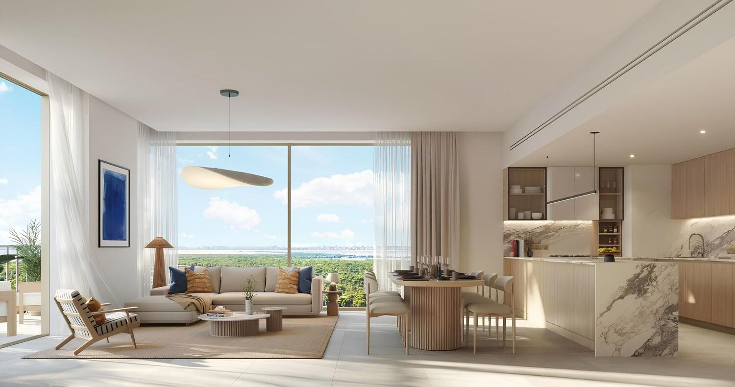 Inside the residences, thoughtful design meets understated elegance. From studios to spacious three-bedroom apartments, each unit is curated to reflect calm sophistication through soft neutral tones, natural textures, and high-quality finishes. Light and dark interior palettes offer timeless appeal, while built-in details like wardrobes with organizers and serene, minimalist bathrooms enhance both comfort and style. Every space is designed to feel effortlessly welcoming and luxuriously livable.