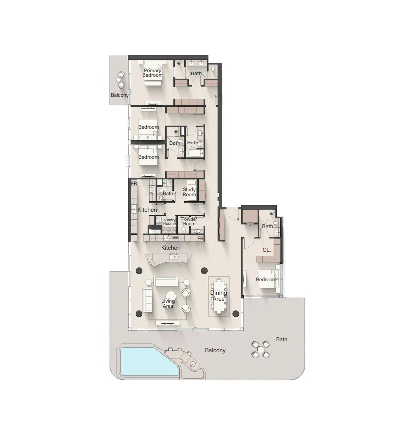 The Meriva Collection by Ellington Properties offers a diverse selection of residences including 1-, 2-, 3-, and 4-bedroom apartments, as well as exclusive penthouses. Each residence is designed with spacious layouts, premium finishes, and expansive terraces that provide breathtaking sea and skyline views.