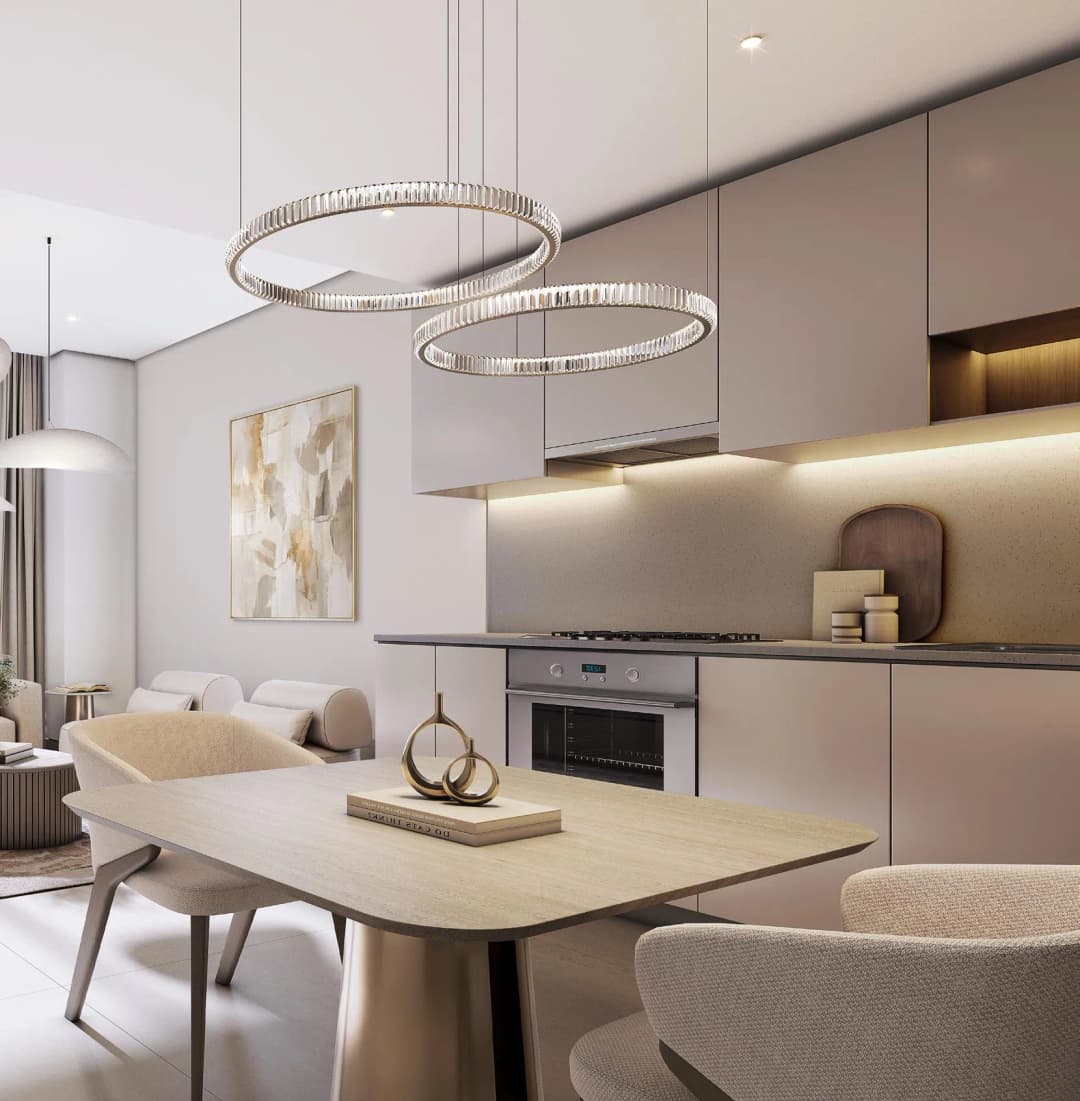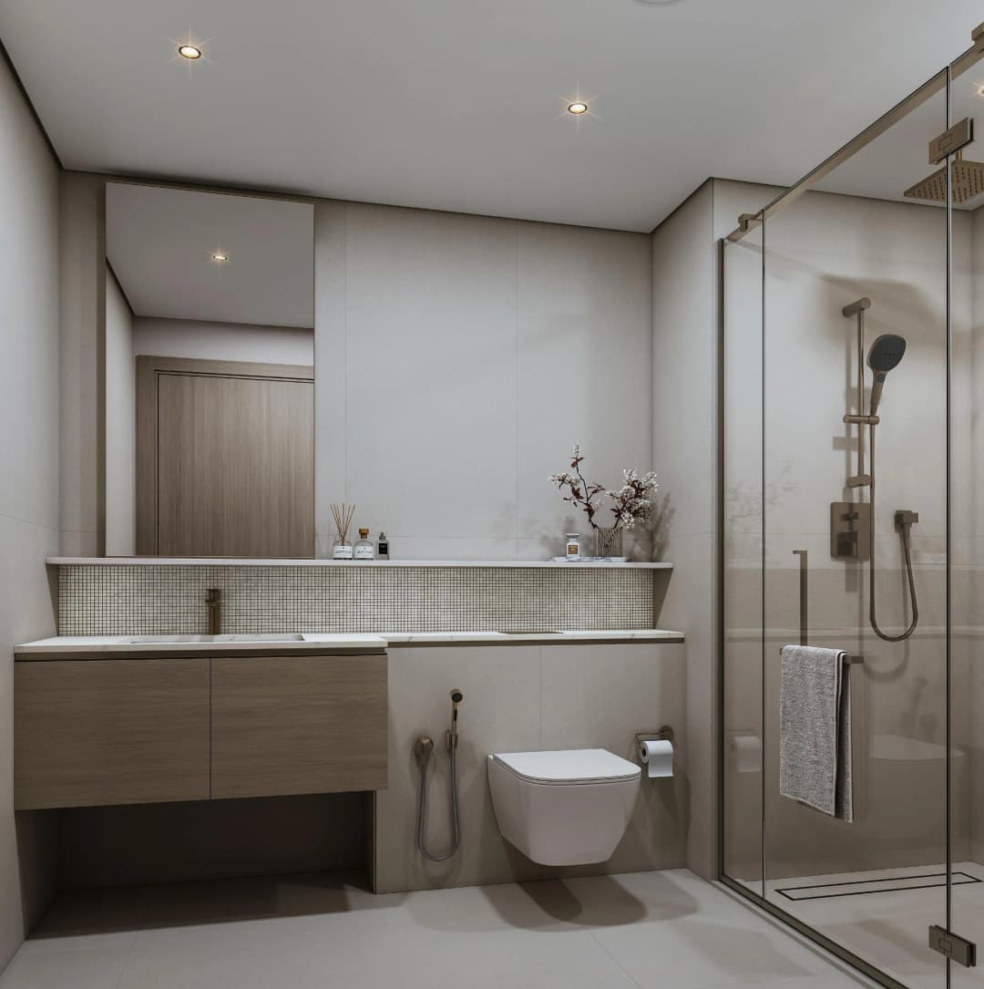 Interiors at Tranquil Beach Residences are designed to reflect the calm elegance of coastal living. The residences are delivered without furniture and feature high-quality finishes with modern materials, creating bright and contemporary living spaces that highlight natural light and open views. The design emphasizes comfort, simplicity, and a seamless connection with the surrounding island landscape, allowing residents to personalize their homes while enjoying a refined seaside lifestyle.