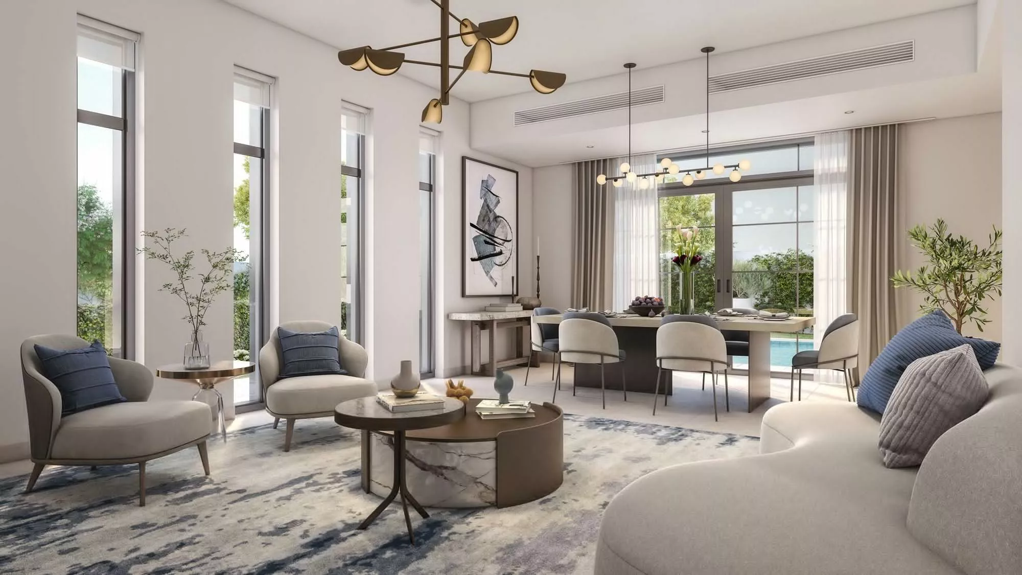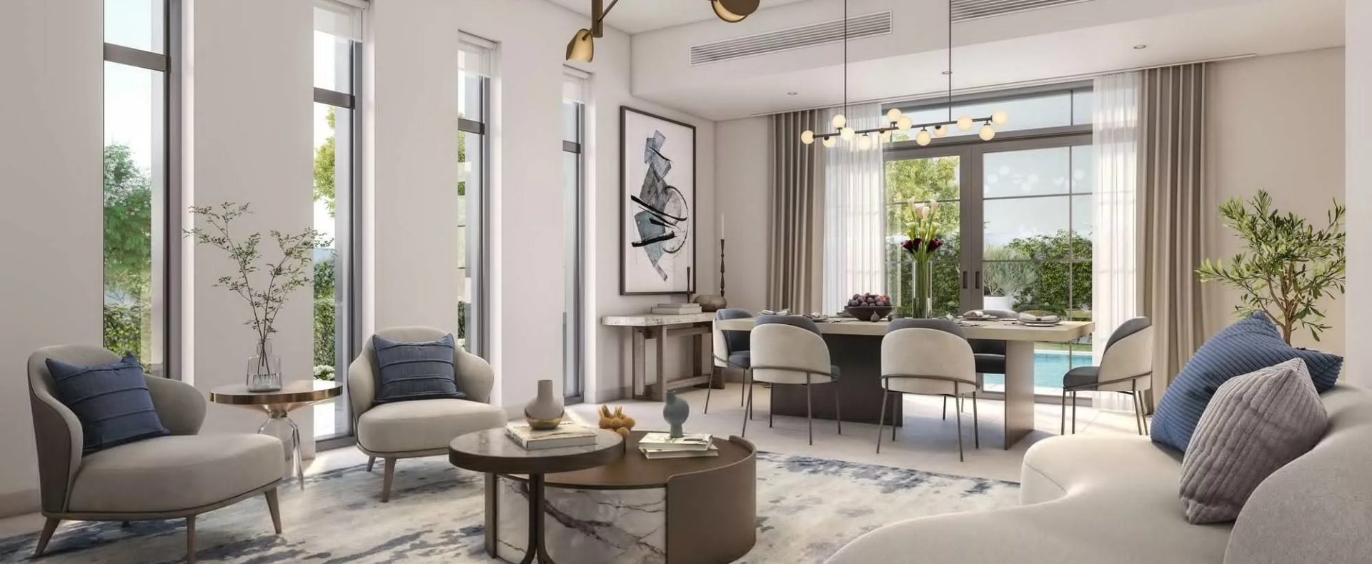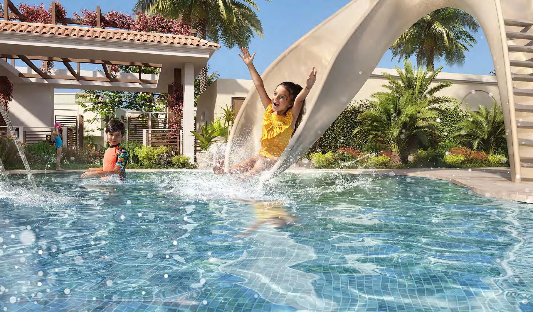 Yas Park Views offers 2-storey Mediterranean style family homes ranging in size from 2,077 sq. ft to 3,186 sq. ft. Villas will be available with various types of interior design to choose from – in light or dark colours. Each villa’s floor plan will include 3-5 bedrooms, an additional maid’s bedroom and a covered garage. Residents will also enjoy a spacious backyard with a garden and a private pool.